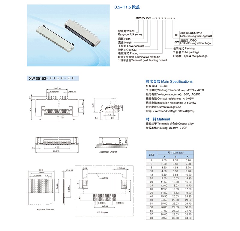 AL1.0-H5.5 vertical stick FPC connectors