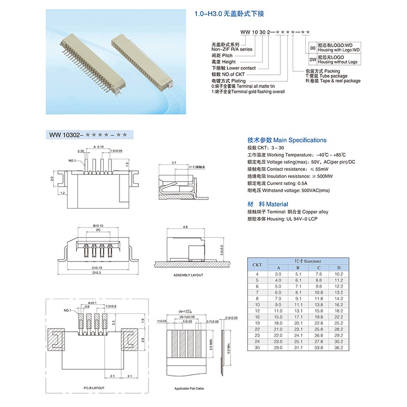 AL1.0-H5.5 vertical stick FPC connectors
